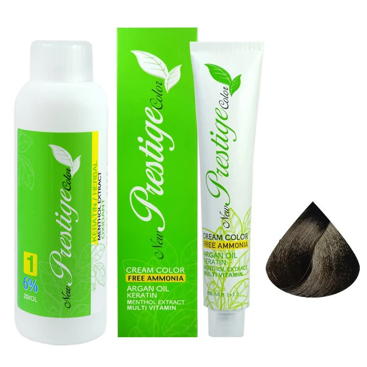 رنگ مو نیو پرستیژ کالر شماره 3 حجم 100 میلی لیتر رنگ قهوه ای تیره به همراه اکسیدان نیو پرستیژ کالر مدل 1 شش درصدی حجم 150 میلی لیتر